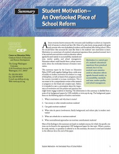 This first paper in a series by the Center on Education Policy discusses the role of student motivation in education and how to support it. The CEP lists the four dimensions of motivation as competence, control/autonomy, interest/value, and relatedness.