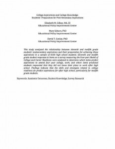 College Aspirations and College Knowledge: Students’ Preparation for Post-Secondary Aspirations