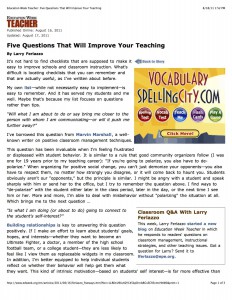 Teacher Larry Ferlazzo shares his list of questions he uses to self-examine and improve his teaching.