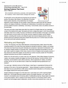 John Larmer and John R. Mergendoller advocate student-driven projects. To facilitate such projects, the authors propose that every teacher make sure he or she includes the seven essential elements of project-based learning in every long-term assignment.