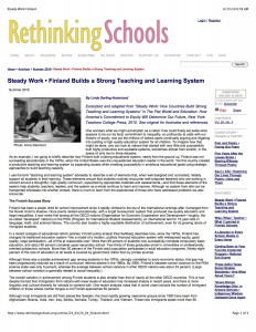 Linda Darling-Hammond explores Finland’s successful educational reforms and the lessons from it that can be applied in the United States.