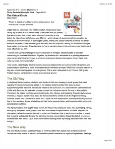 Teacher Stacy Kitsis shares her experiences with small-group literature discussions held through social-networking and how doing so differed from in-class small-ground literature discussions.
