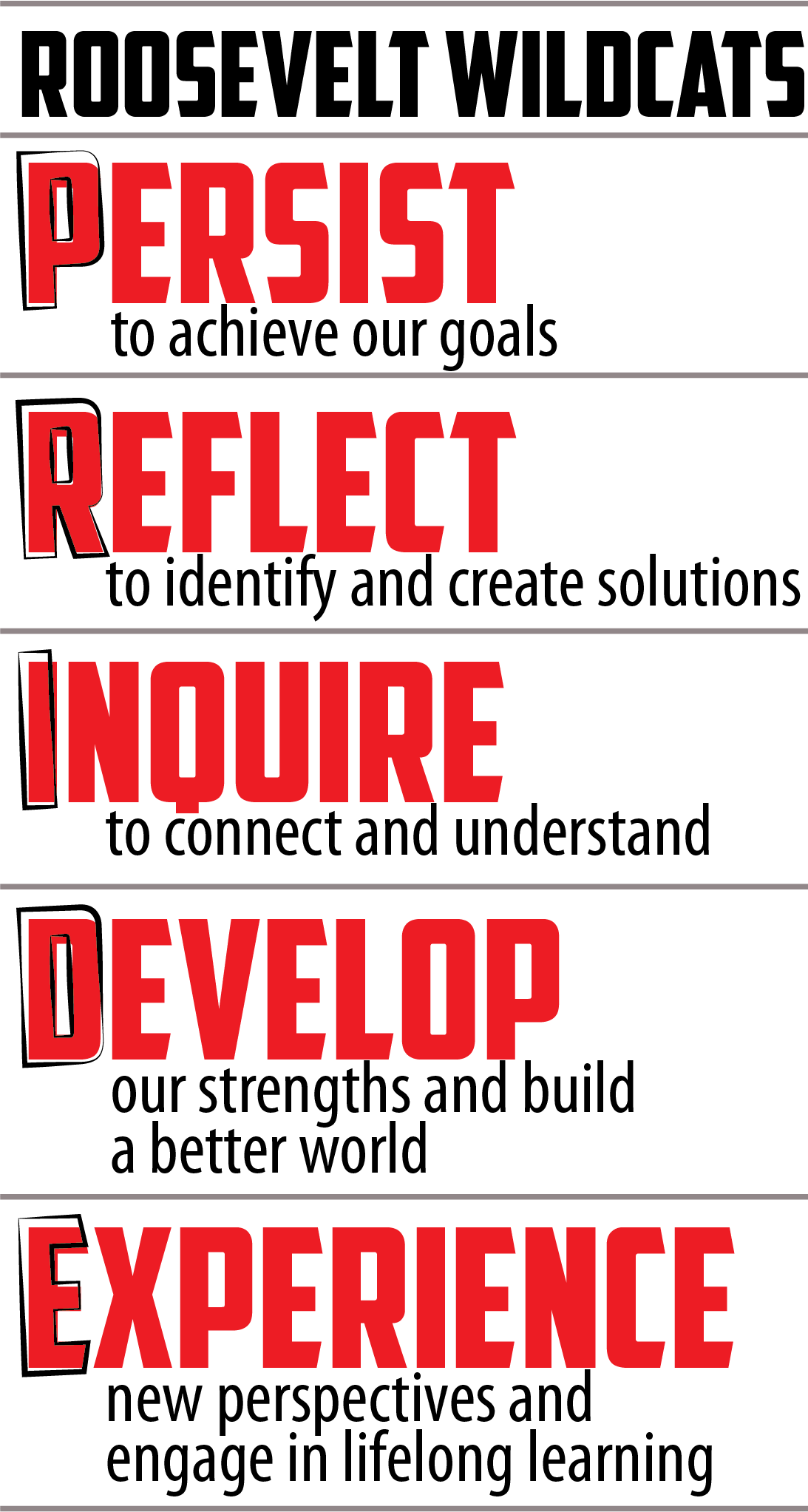 [/vc_column_text][vc_column_text]To ensure that both students and teachers have a universal understanding about the life ready skills that every student needs to have when they leave school, Inflexion consultants worked with the school leaders to collect feedback using a survey, from both students and staff about what the PRIDE promise statements mean to them and how they see them relating to their everyday lives. Based on this and on what they knew about the skills students were gaining through the Artful Learning curriculum, Inflexion consultants developed Life Ready Maxims that Roosevelt Middle School can use every period, every day so that both teachers and students can draw clear connections between all that they are learning and teaching. Not only can the maxims be used by every student and staff member in the school, they can also show how past and present efforts align.[/vc_column_text][/vc_column_inner][vc_column_inner width=”1/3″ css=”.vc_custom_1532631854328{background-color: #555759 !important;}”][vc_column_text]