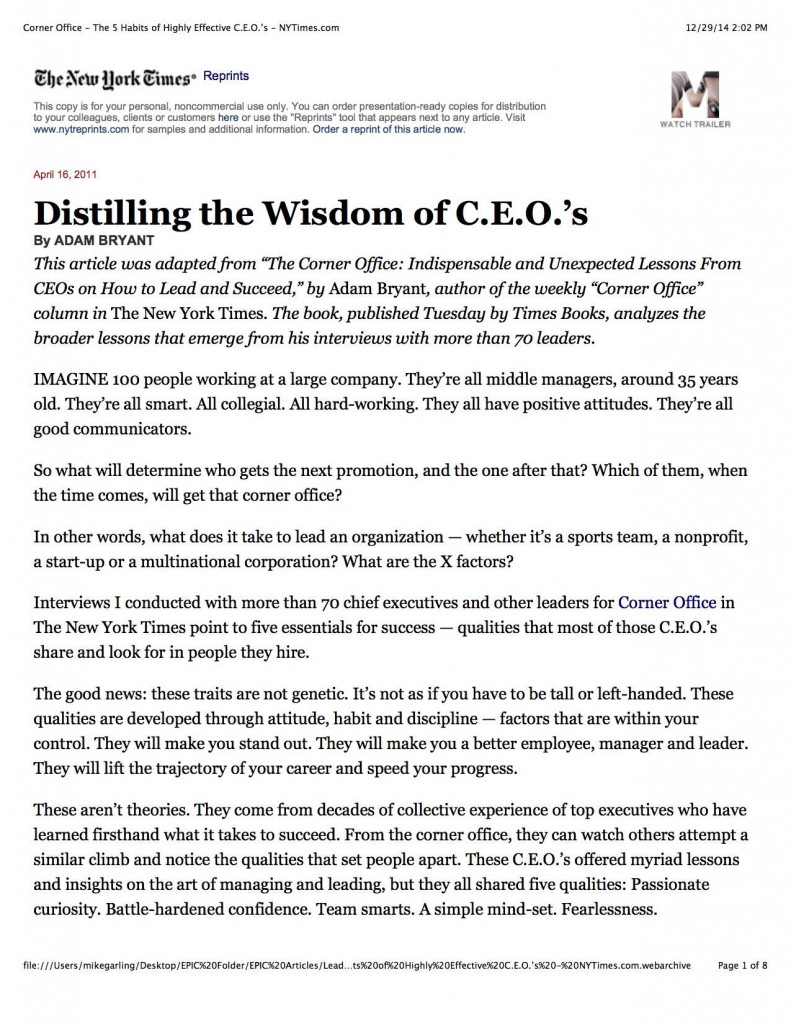 Adam Bryant interviewed over seventy chief executives and other leaders to determine five essential qualities that C.E.O’s share and look…