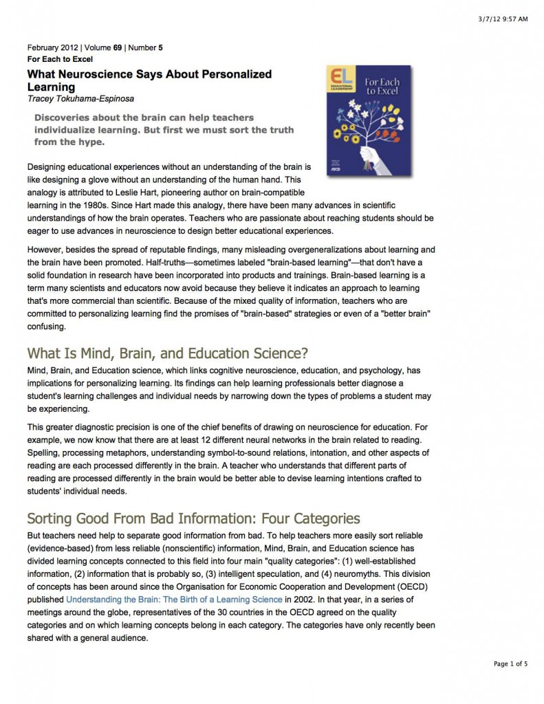 Tracey Tokuhama-Espinosa argues that educators use neuroscience to understand and form personalized learning opportunities, but also acknowledges that there is…