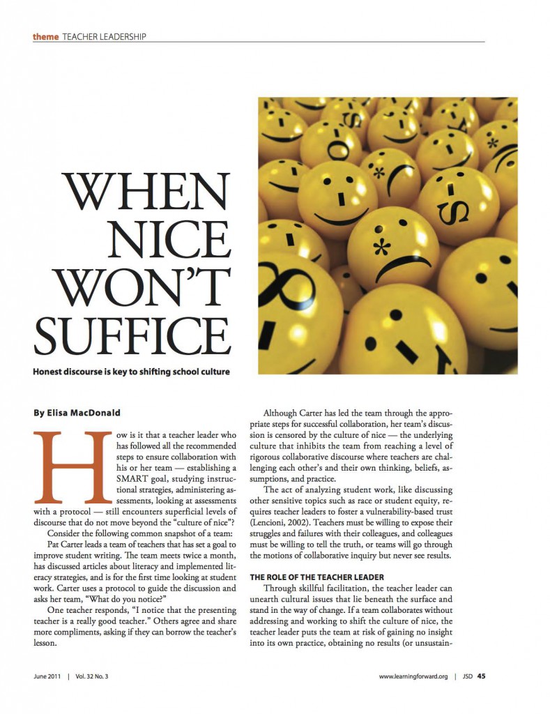 Elisa MacDonald asserts that professional learning communities must be able to tackle issues and give and receive constructive criticism for…