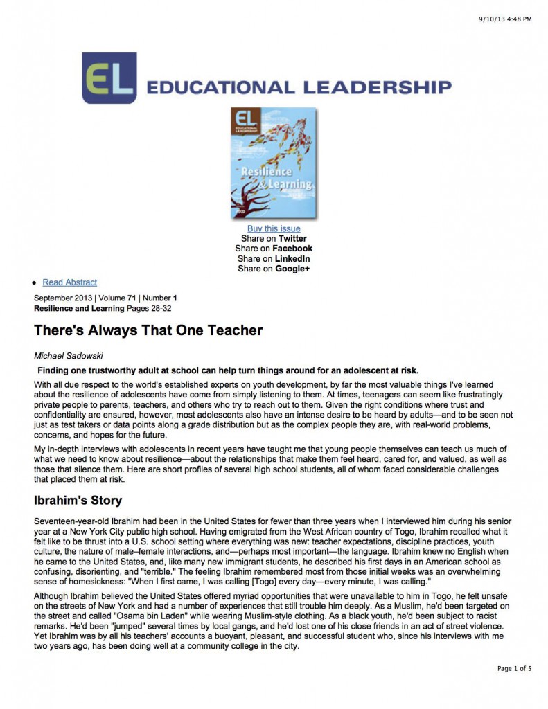 Michael Sadowski shares stories from various teenagers who had one adult in their life that they felt they could turn…