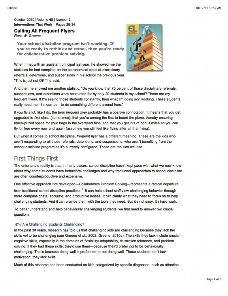 In “Calling All Frequent Flyers,” Greene proposes a new system for dealing with what he calls “frequent flyers”: students who…