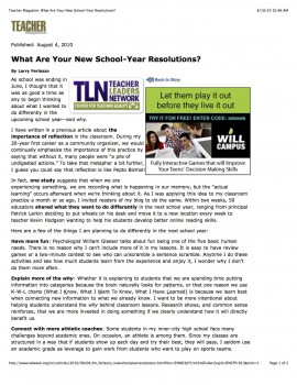 Larry Ferlazzo discusses the importance of reflection in the classroom and shares his 2010-2011 school year resolutions.